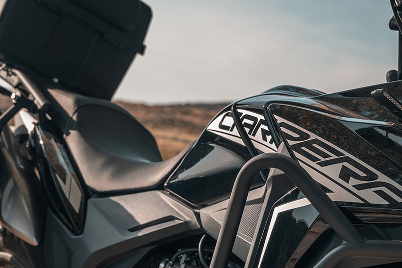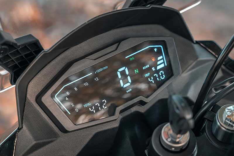 Amb un motor de 12,64 CV amb refrigeració aire, ofereix una resposta àgil i eficient, ideal per a moure’t amb soltesa per qualsevol terreny. Les seves llandes de radis de 19” davant i 17” darrere garanteixen estabilitat en camins irregulars, mentre el sistema d’il·luminació full LED i la pantalla digital LCD et connecten amb el camí i amb la moto com mai abans.